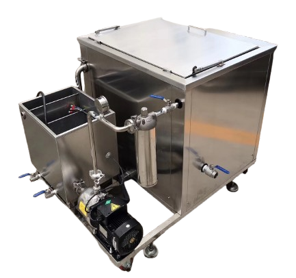 A circulation filtration system keeps the ultrasonic solvent clean, and cleaning performance, reduces costs, then extends the ultrasonic solution , ultrasonic cleaning tank’s life ,and environmentally friendly.